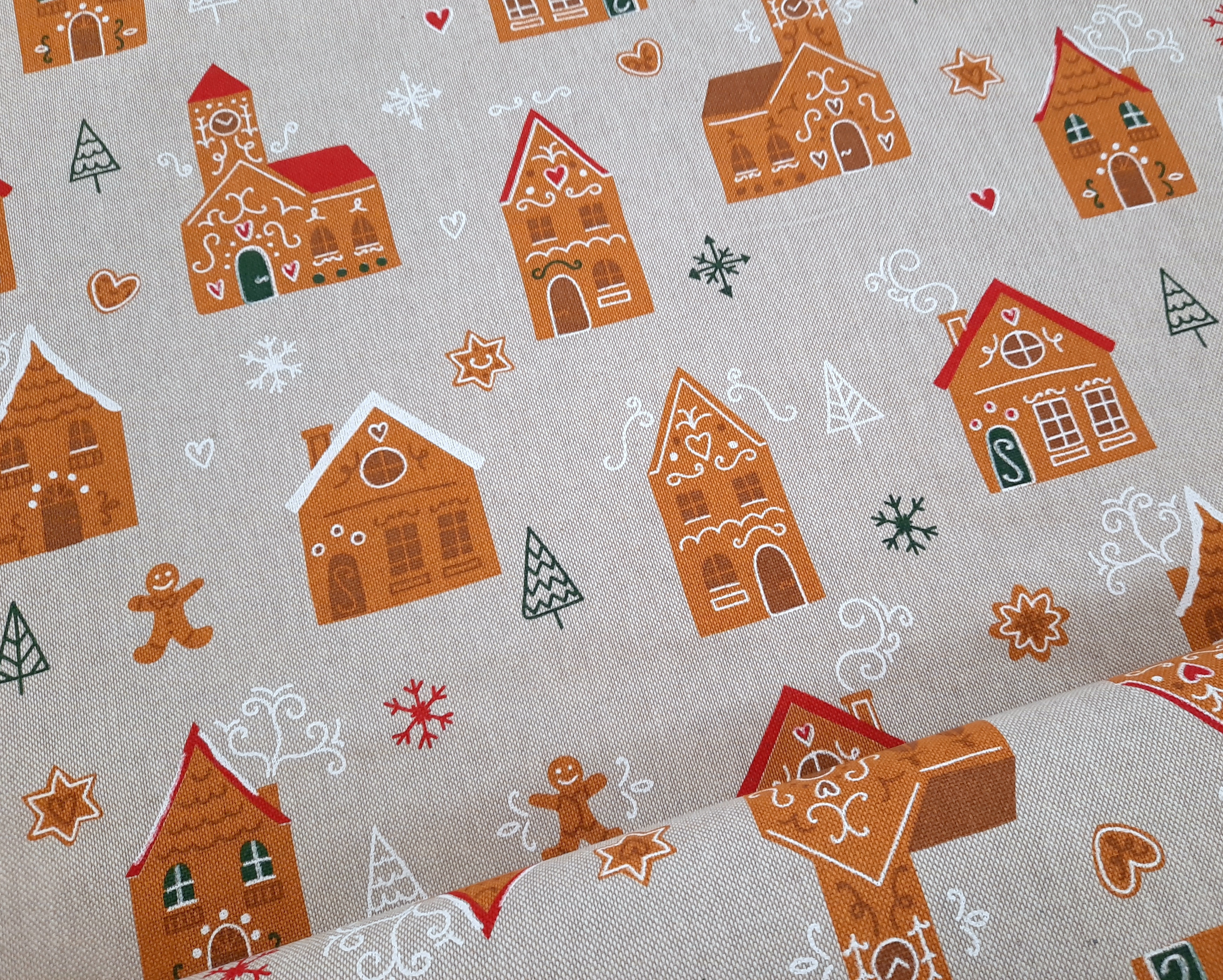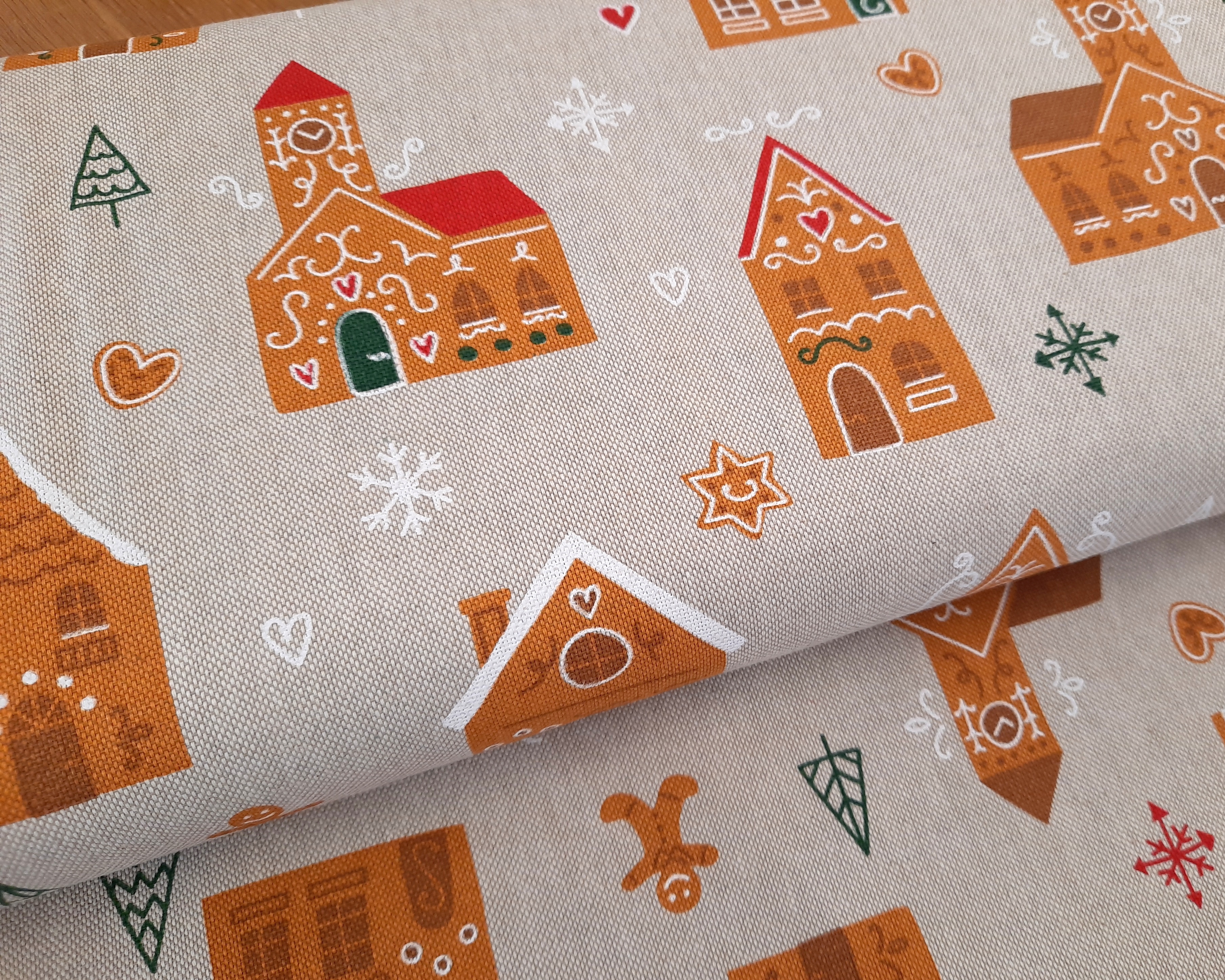 Dekostoff - Leinenoptik - Lebkuchen Städtchen