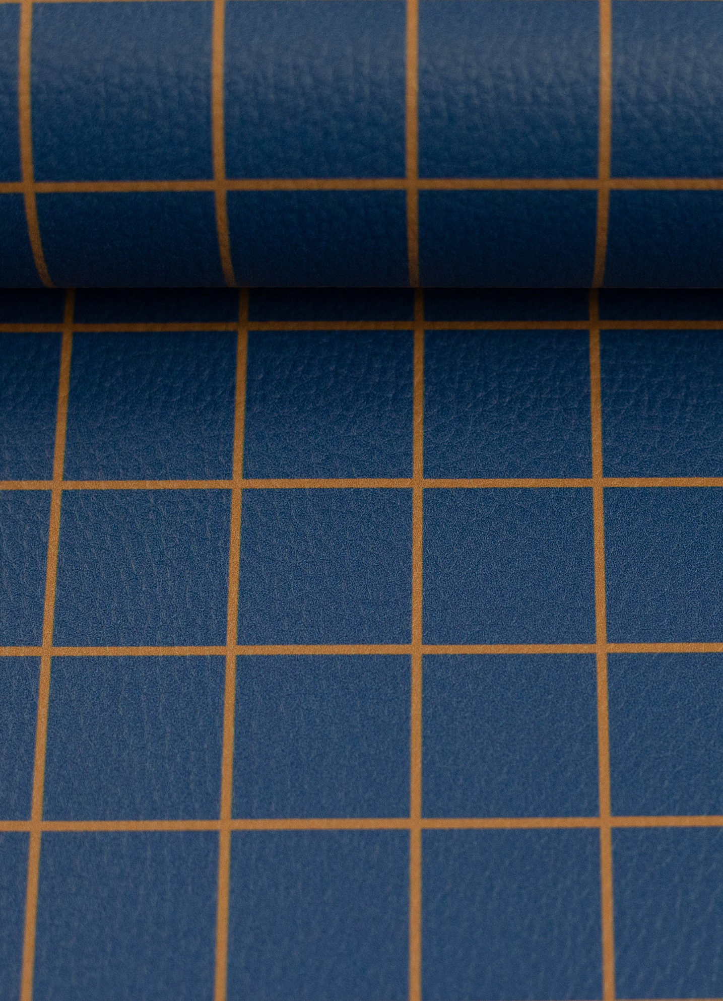 Kunstleder - Happy - Cherry Picking - karo - dunkelblau - ocker