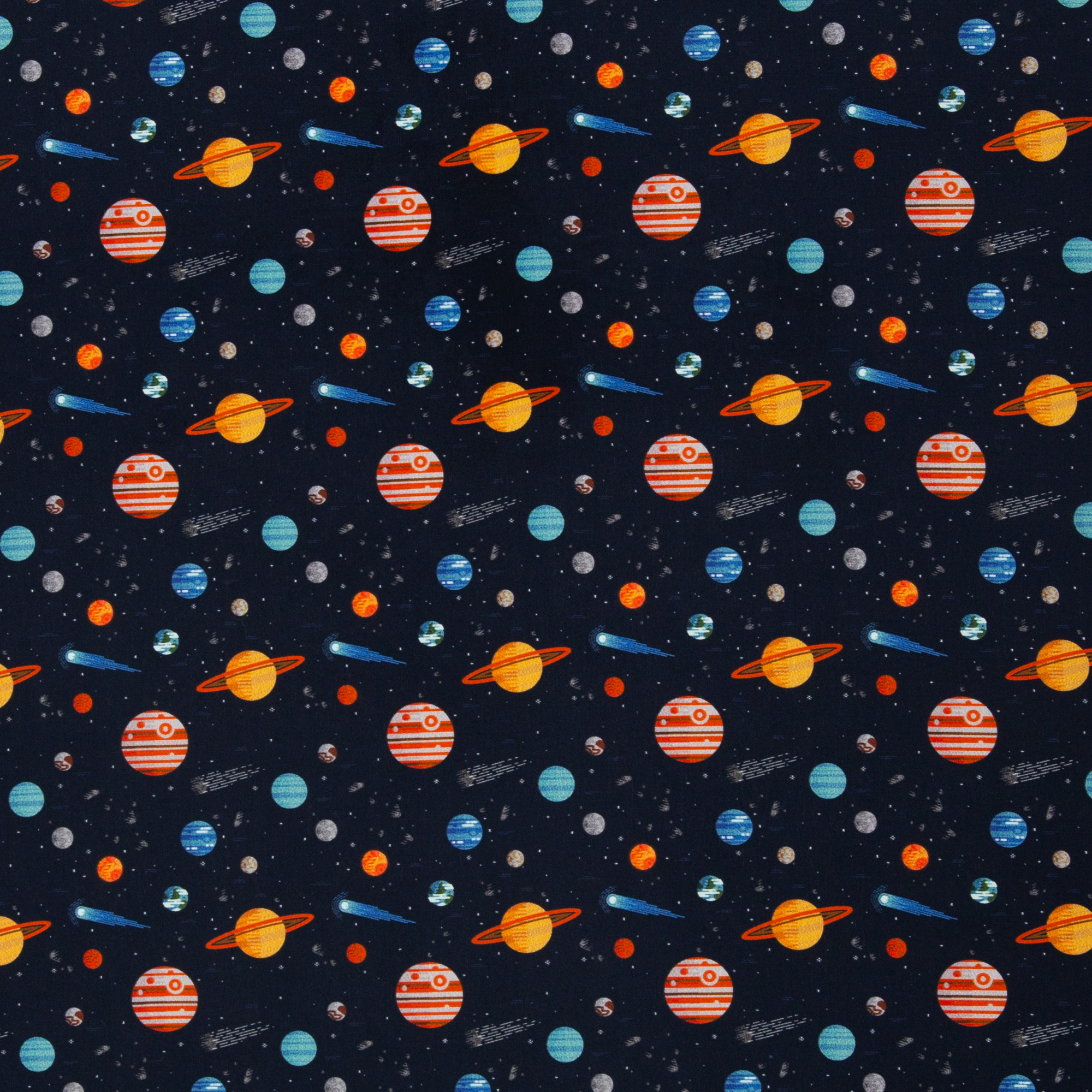 Toller Baumwollstoff mit bunten Planeten. Toll für kleine Weltraumfans. Für Kleider, Beutel, Taschen, Rucksäcke, Decken, Deko, Kissen, Bettwäsche...