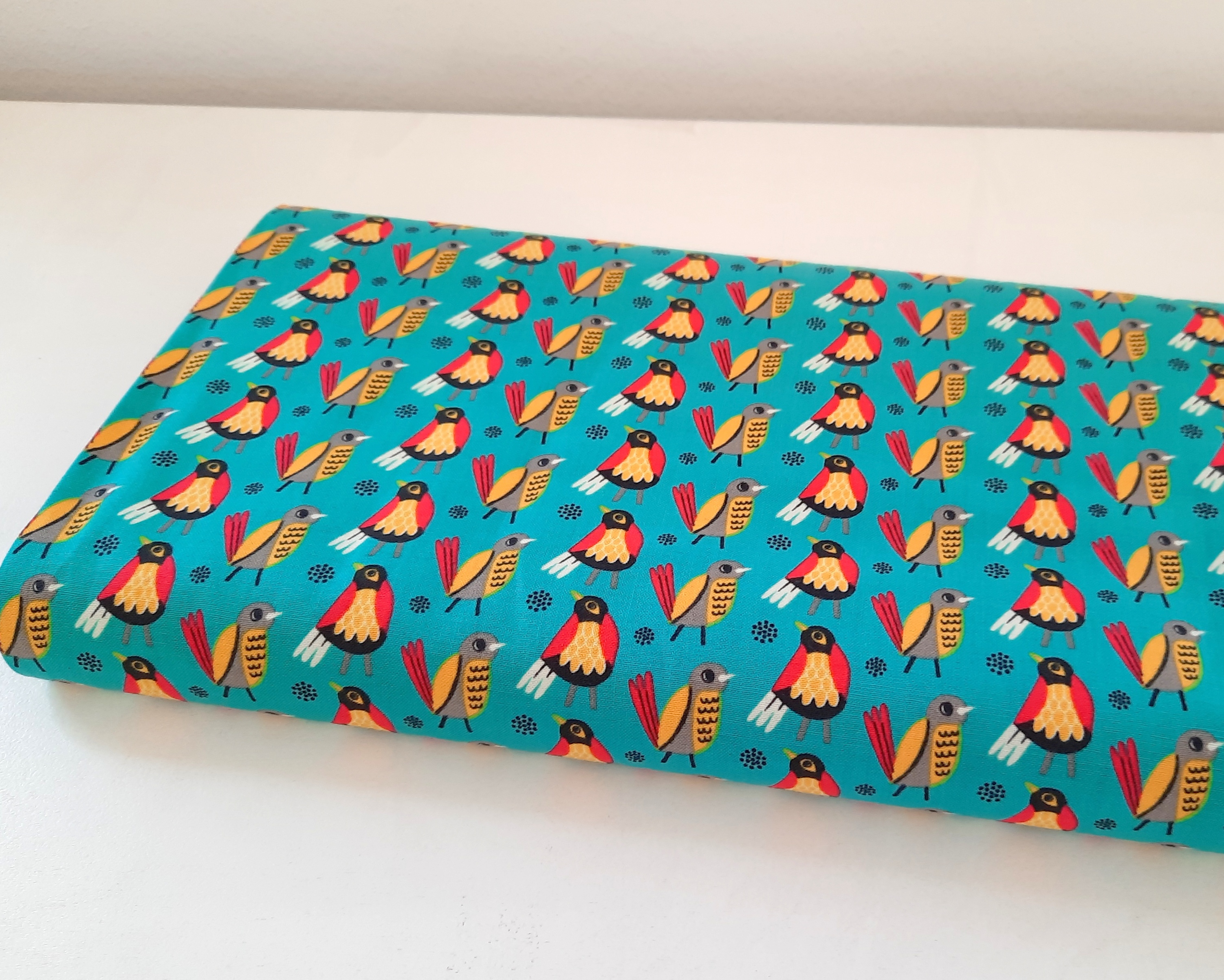 Baumwollstoff - Vögel - türkis