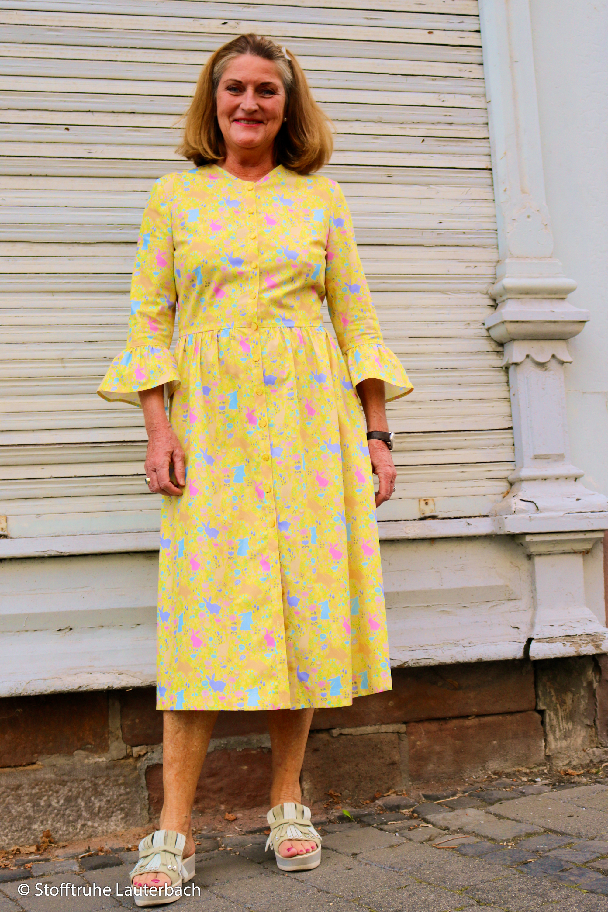 Baumwollstoff - Happy Easter - Hasenwiese - gelb