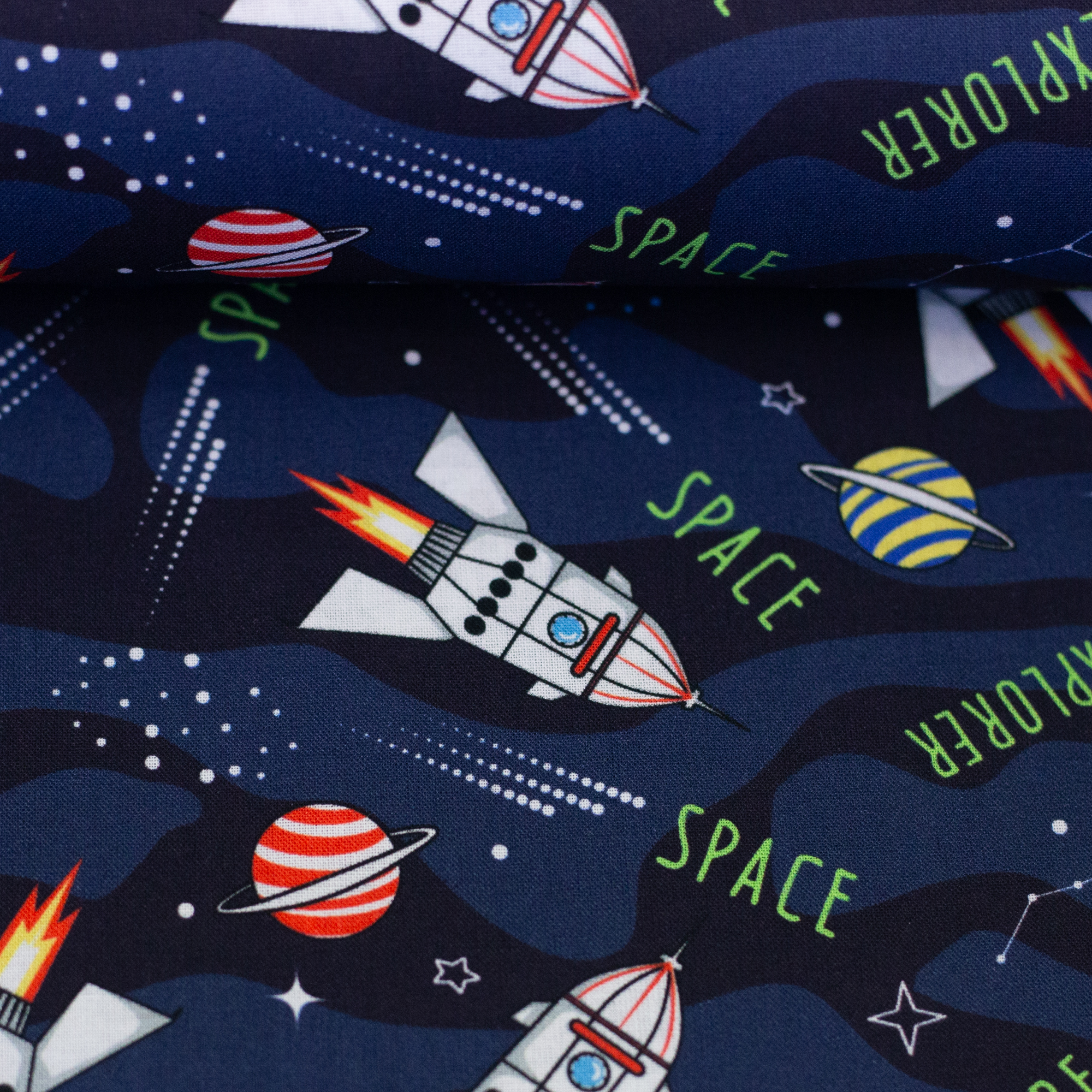 Baumwollstoff - Tim - Raketen - Weltall