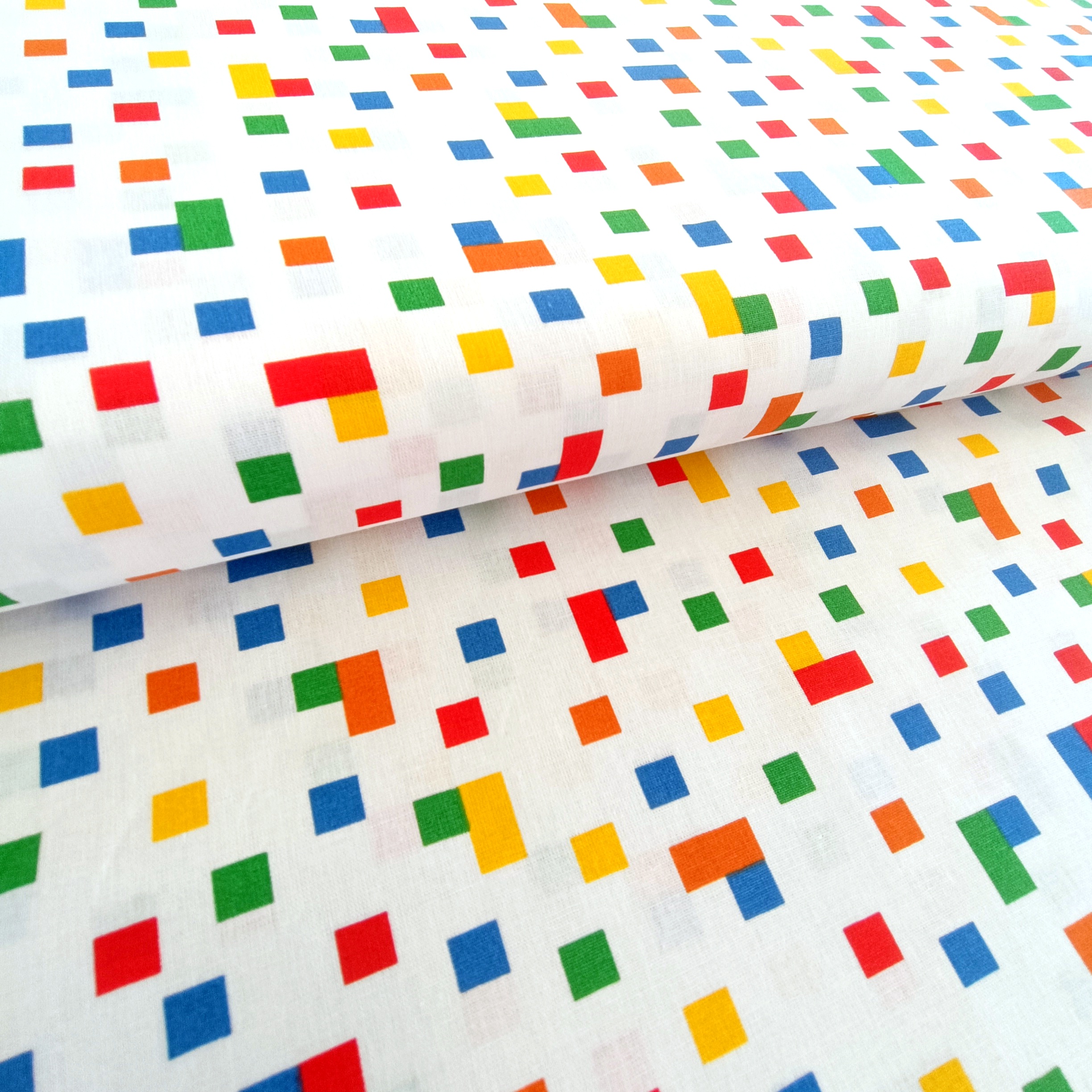 Toller leichter Baumwollstoff mit bunten Vierecken. Perfekt auch zur Aufbewahrung von Spielzeug. :) Für Kleider, Beutel, Taschen, Rucksäcke, Decken, Deko, Kissen, Bettwäsche...