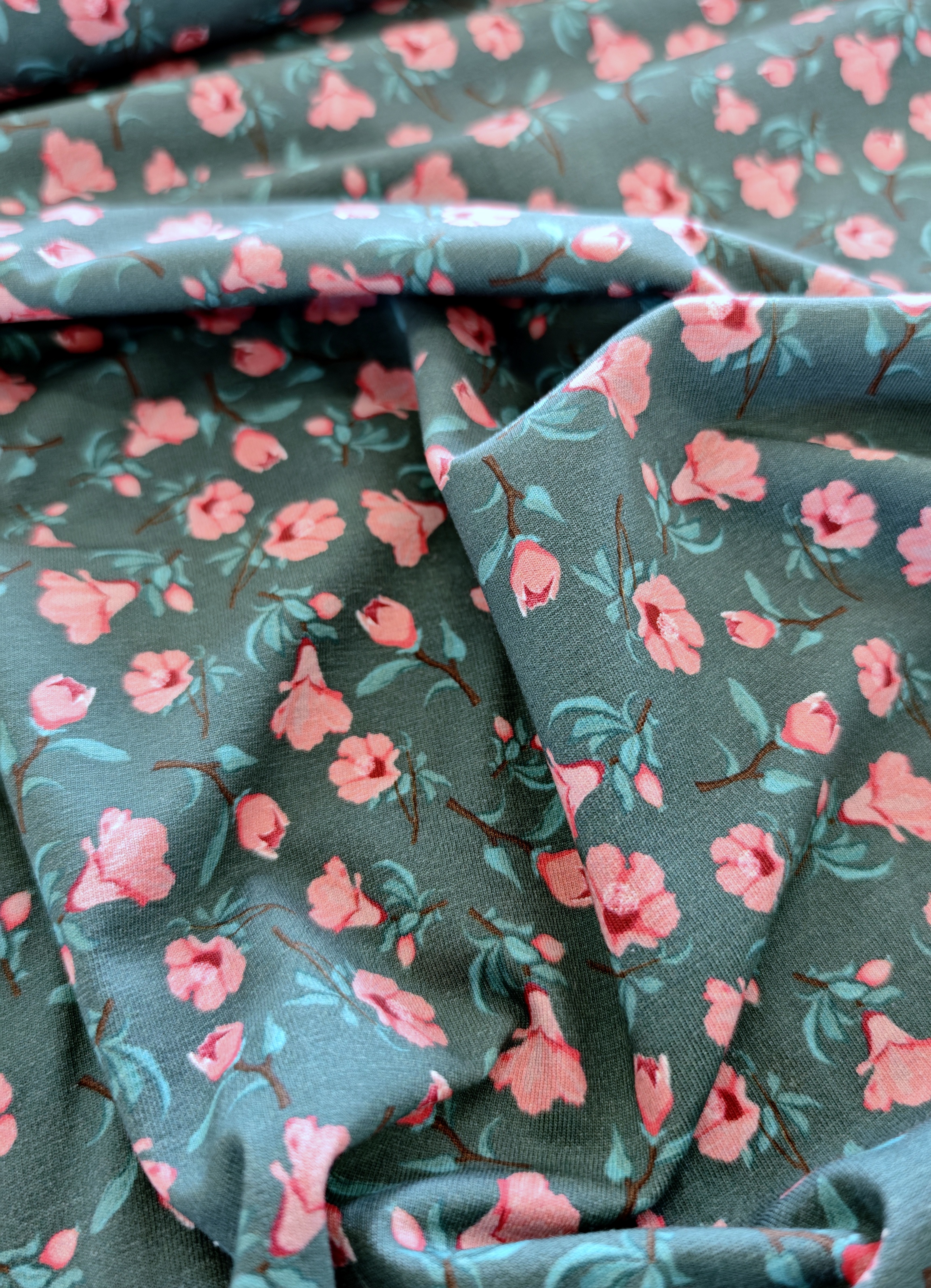 Wunderschöner Jersey mit Blumen.