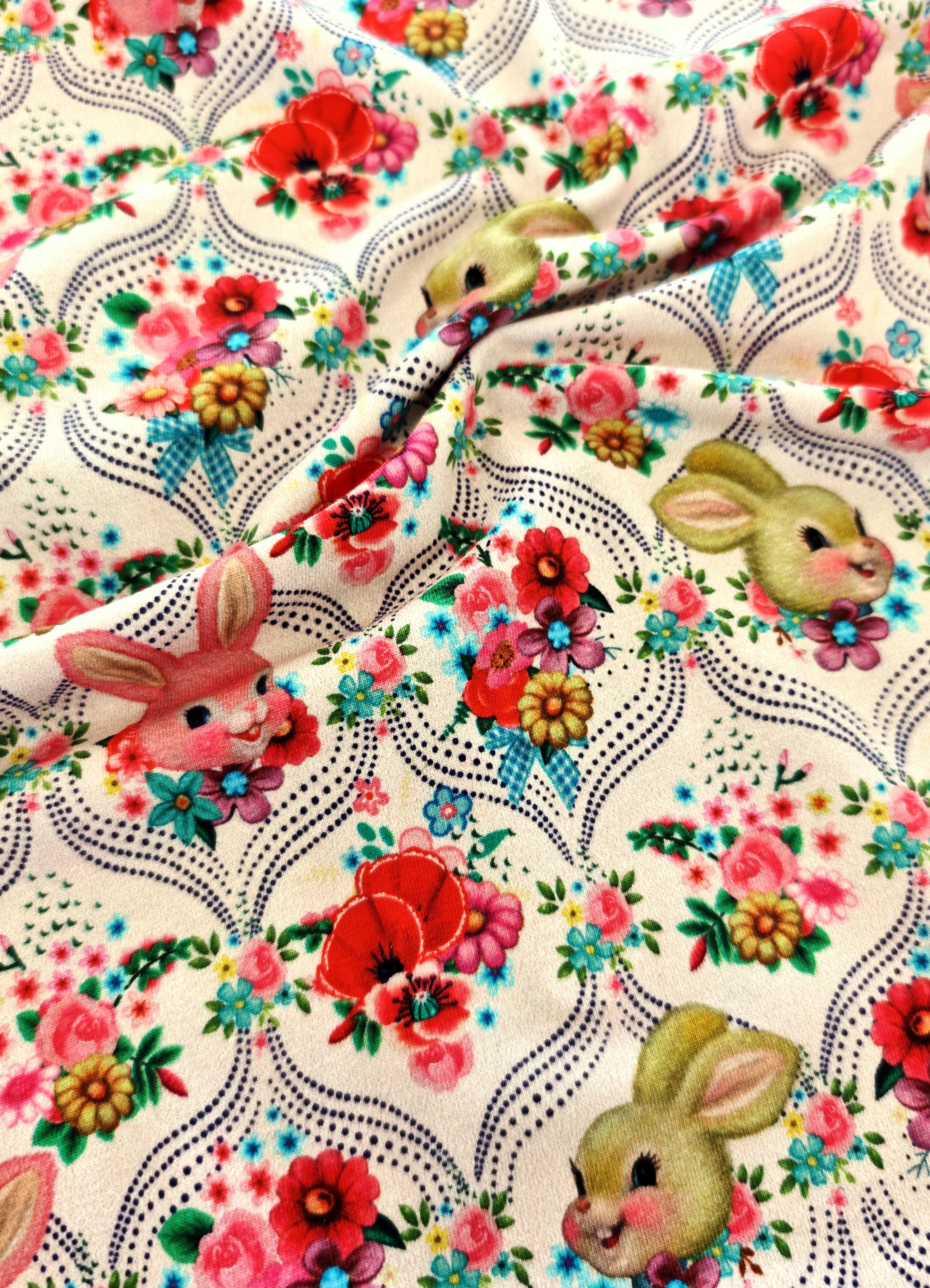 Jersey - Vintage Hasen - Blumen - creme