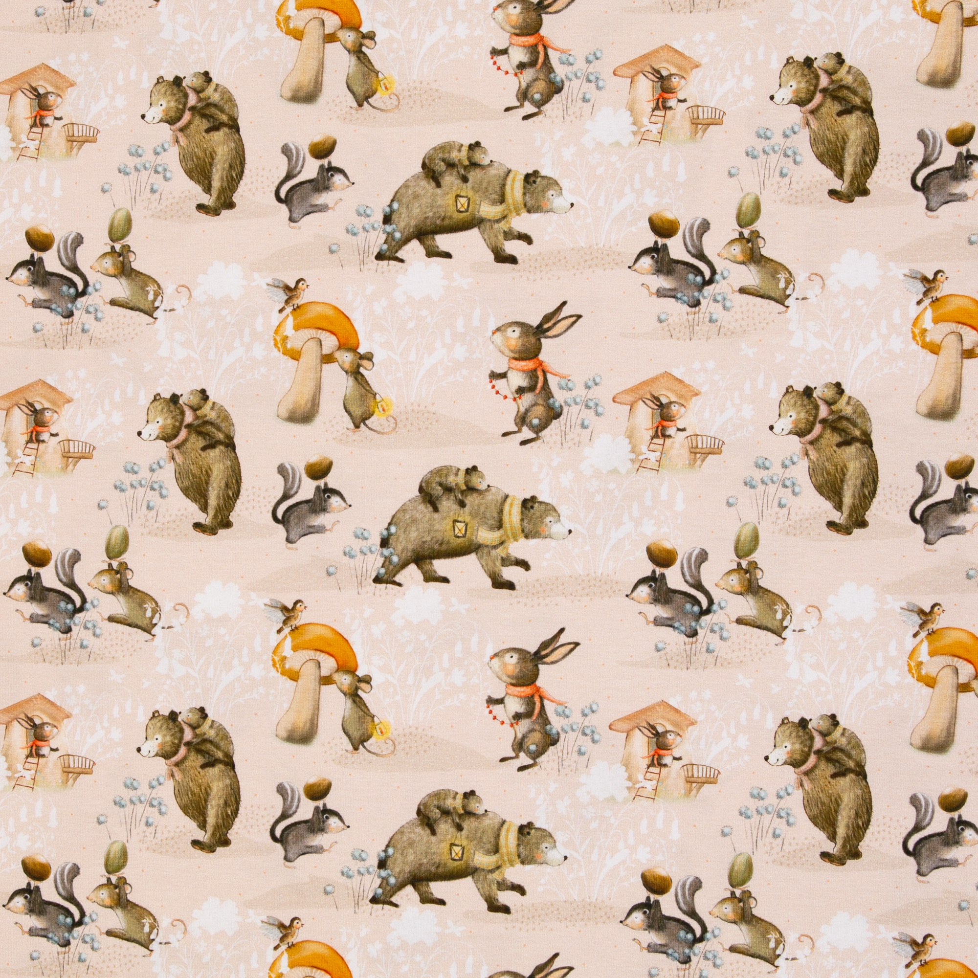 Toller Jersey mit niedlichem Füchsen und Bären. Für tolle Kleider, Strampler, Hosen, Shirts... 95 % Baumwolle, 5 % Elasthan Breite 160 cm