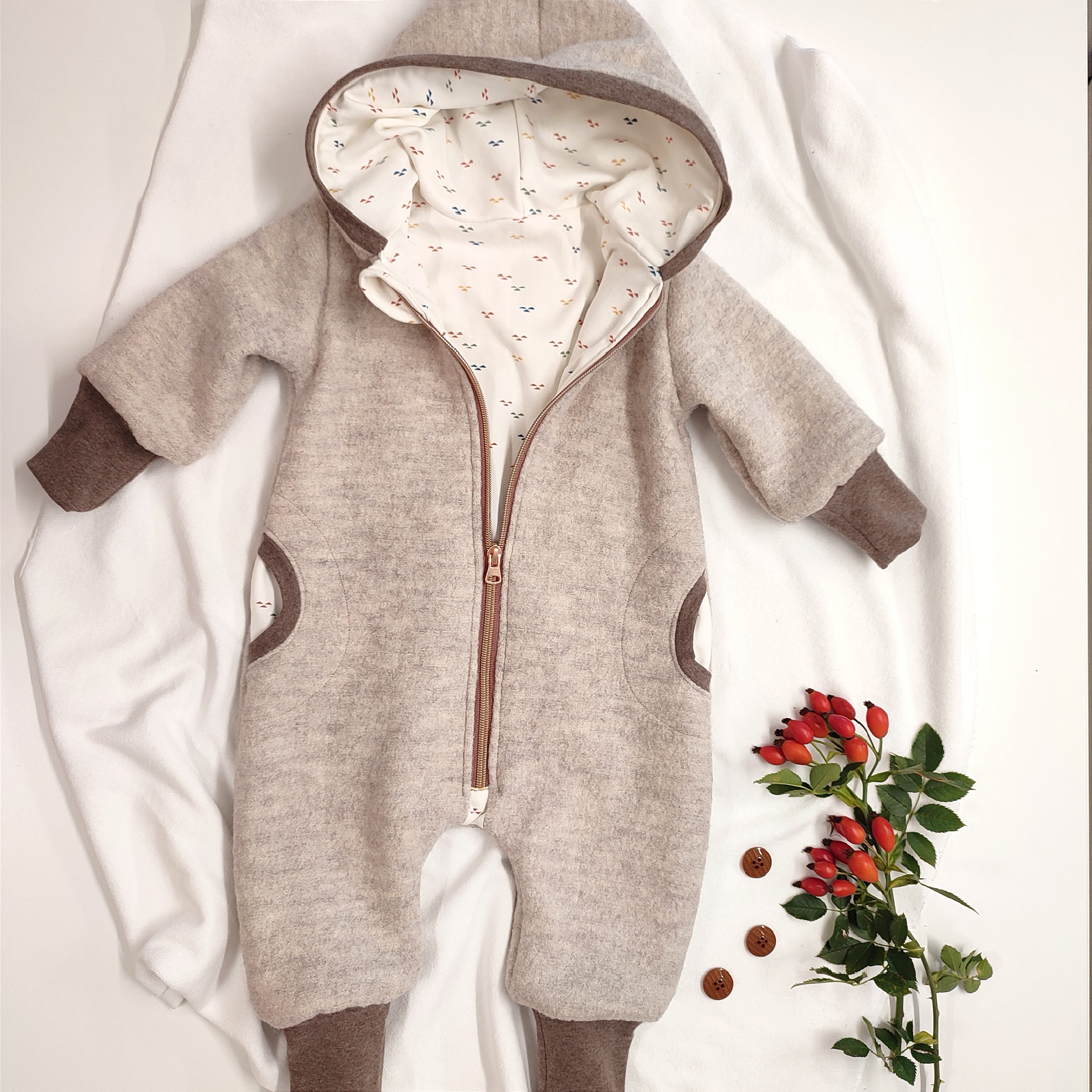 gekochte Wolle - Wollstoff - Walk - Naomi - natur melliert - 1010