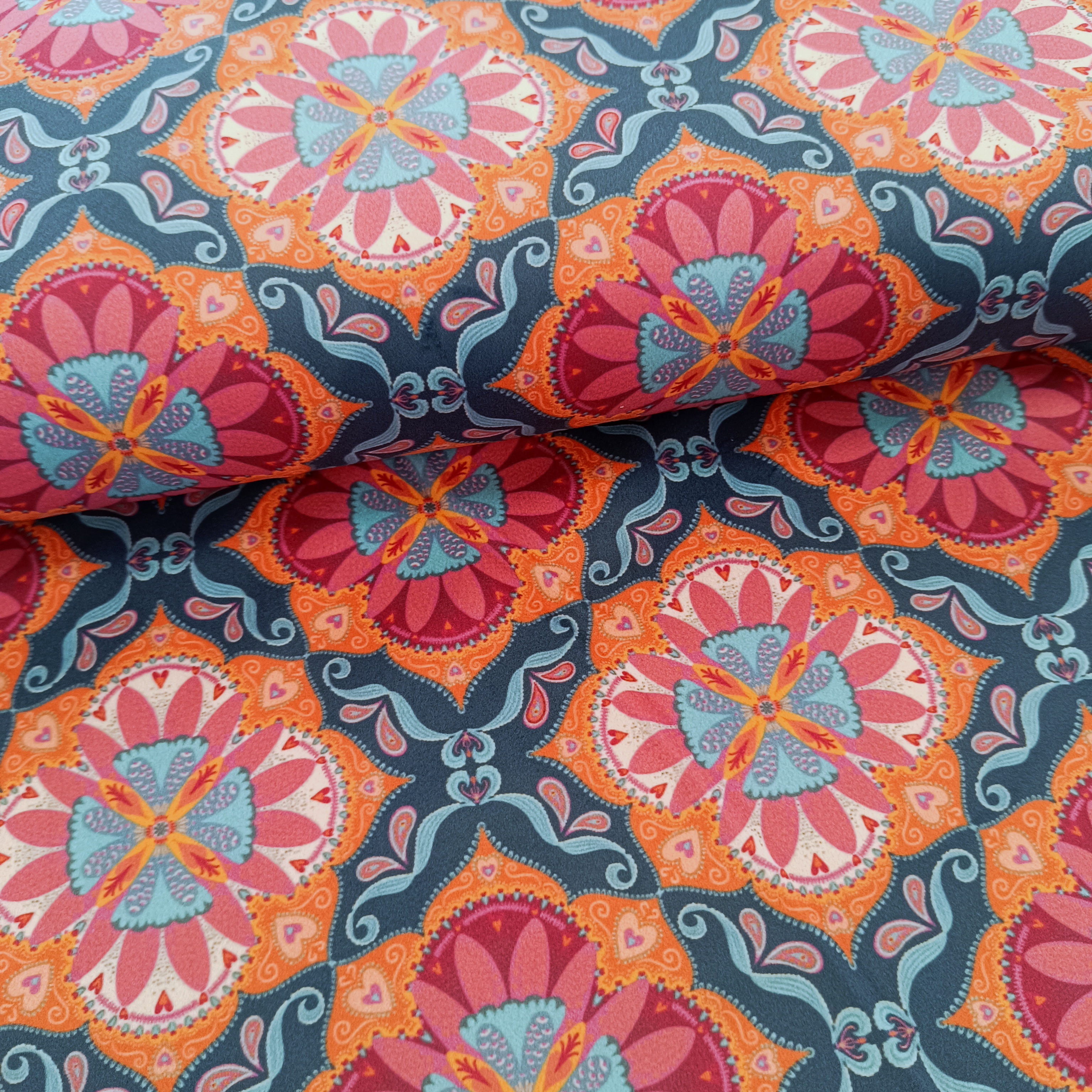 Samtiger Stoff im trendigen Boho-Style – wie könnte dieser Stoff anders heißen als BOHO VELVET? Die farbenfrohen, detailliert ausgearbeiteten Designs erinnern an ornamentale, reich ausgeschmückte Tapetendesigns. Es gibt drei Designs in jeweils zwei verschiedenen Farben.