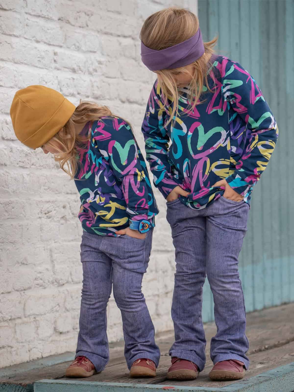 Die Flared Legs ist ein Schnittmuster für eine Schlaghose mit verschiedenen Varianten. Du kannst sie mit Gummiband oder Bündchen nähen. Optional kannst du Eingrifftaschen, Fake-Taschen oder aufgesetzte Po-Taschen anbringen. Ein Fake-Reißverschlussschlitz sorgt für einen coolen Jeans-Look. Das Schnittmuster ist für AnfängerInnen geeignet.