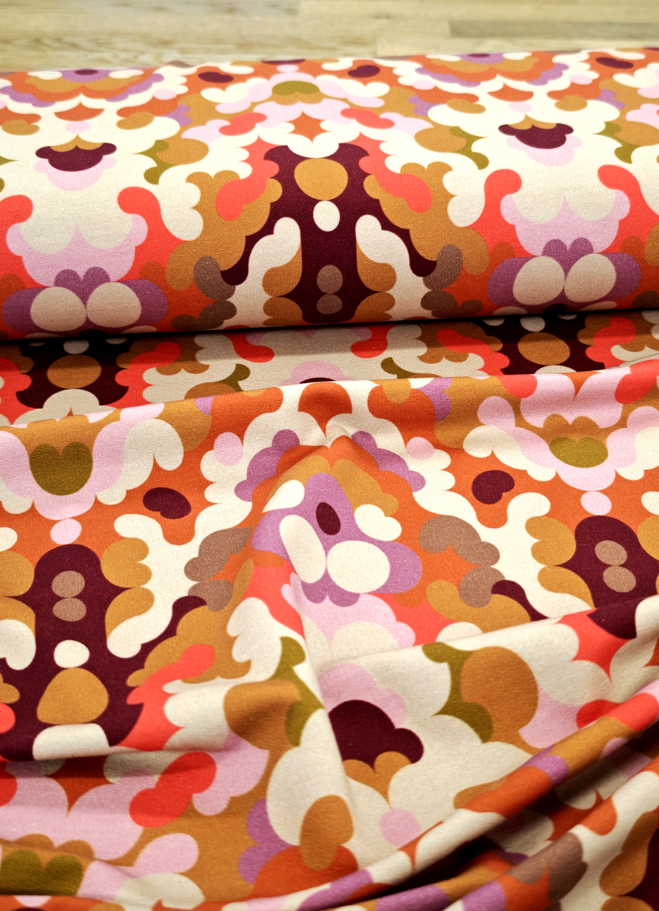 Wundervoller weicher und angerauhter Sweat mit tollem Design im retrolook. Perfekt für Sweater, Hoodies, Jacken und Mützen..