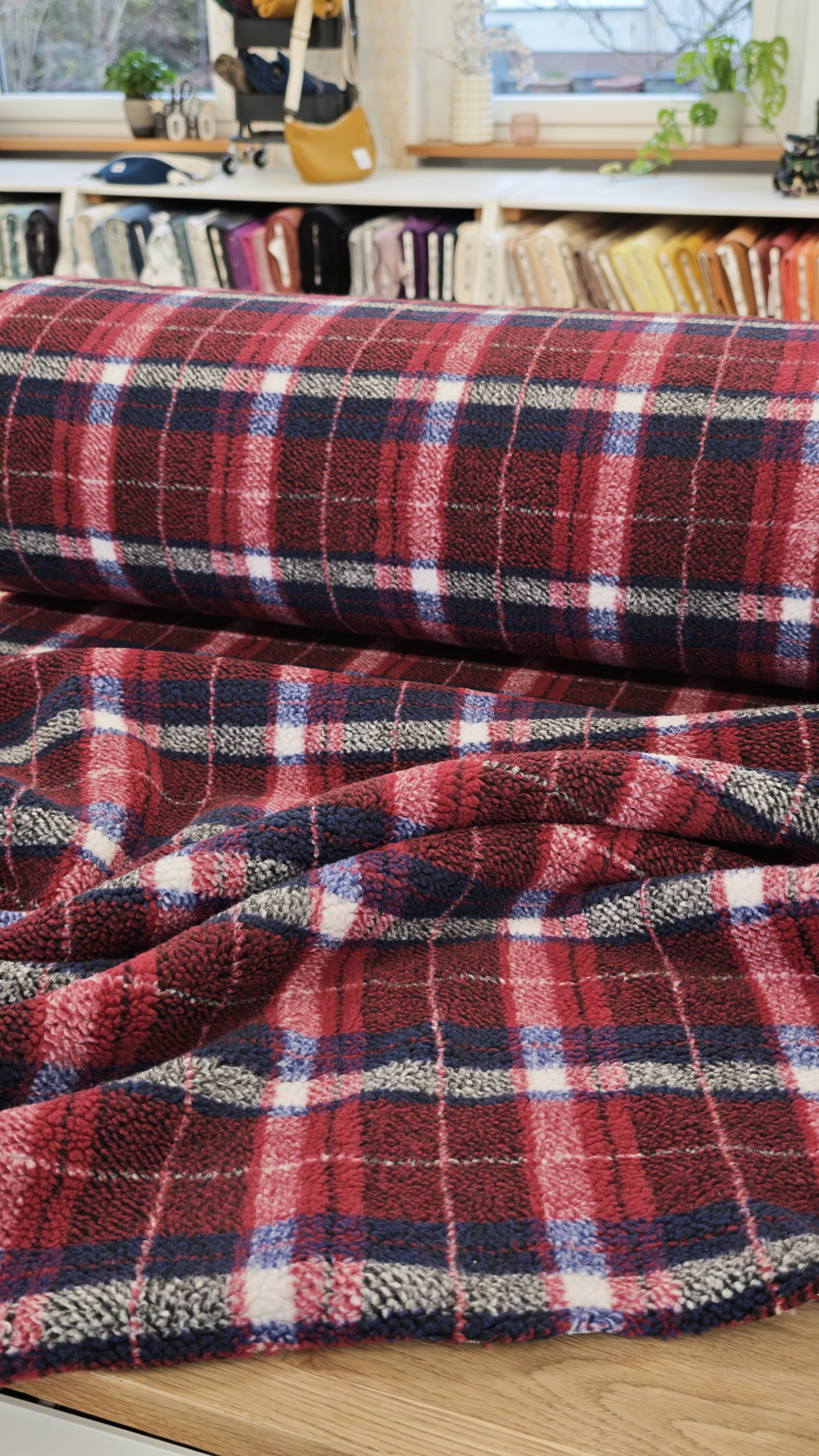 Seine flauschige Struktur und die liebevollen Details machen ihn ideal für Jacken, Westen, Kinderbekleidung, Decken und viele weitere kreative Projekte.